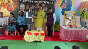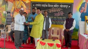 गणेश नाईक विद्यामंदिर व कै मातोश्री मलकावा हणमंतप्पा बिराजदार पाटील प्रशाला रत्नमंजरी सोसायटी जुळे सोलापूर येथे महात्मा बसवेश्वर जयंती साजरी आली