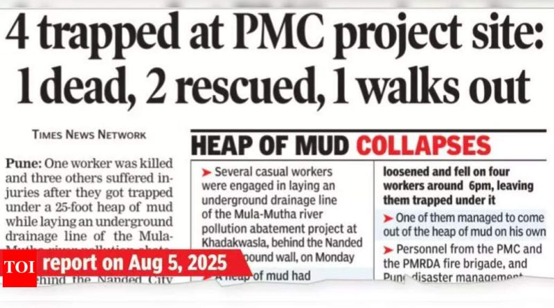 पुणे-पीएमसी प्रकल्प साइटवर कामगारांच्या मृत्यूची जबाबदारी आणि तीन जणांच्या दुखापतीची जबाबदारी निश्चित करण्यासाठी चालू असलेल्या चौकशीचा एक भाग म्हणून नॅन्डेड सिटी पोलिसांनी एक नागरी कंत्राटदार आणि उप-कंत्राटदाराला प्रश्न विचारण्यासाठी बोलावले. “आत्तापर्यंत या घटनेसंदर्भात अपघाती मृत्यूची घटना नोंदविली गेली आहे. आम्ही मृताच्या ससून जनरल हॉस्पिटलच्या पोस्टमॉर्टम अहवालाची वाट पाहत आहोत. आम्ही प्रकल्प साइटवरील सुरक्षा उपायांशी संबंधित पुणे नगरपालिका (पीएमसी) ला लिहित आहोत. ज्येष्ठ इंस्पेक्टर अटुल भोस यांनी नंदन शहराच्या निवेदनात म्हटले आहे. नॅन्डेड सिटी कंपाऊंडच्या भिंतीच्या मागे खडकवासला येथे मुला मुटा नदी प्रदूषण कमी करण्याच्या प्रकल्पाच्या भूमिगत ड्रेनेज लाइन ठेवताना सोमवारी चार कामगार चिखलाच्या 25 फूट ढीगाखाली अडकले.पोलिसांचे पोलिस आयुक्त (झोन II) संभाजी कदाम यांनी टीओआयला सांगितले की, “नागरी कंत्राटदार आणि उप-कंत्राटदार यांच्या चौकशीच्या निकालाच्या आधारे, पीएमसी आणि वैद्यकीय अहवालांद्वारे प्रदान केलेल्या कागदपत्रांची तपासणी, दुर्लक्ष किंवा दोषीपणामुळे मृत्यूशी संबंधित एफआयआर नोंदविण्याच्या आवाहनावर आधारित आहे.”पीएमसीच्या अधिका said ्यांनी सांगितले की त्यांना प्रकल्प साइटवर सुरक्षा उपायांमध्ये लॅकुनास सापडले. प्रशासनाने कंत्राटदाराला नोटीस बजावली आहे. “अपघातानंतर पीएमसीच्या अधिका officials ्यांच्या पथकाने त्या जागेवर भेट दिली. त्यांच्या तपासणीत असे दिसून आले की साइटवर पुरेसे सुरक्षा आणि सुरक्षा उपाययोजना केली गेली नाहीत. सुरक्षेच्या निकषांचे पालन न केल्याबद्दल प्रशासन कंत्राटदारावर दंड ठोठावेल,” असे पीएमसीच्या निचरा विभागाचे प्रमुख जगदीश खानोर यांनी सांगितले. ते म्हणाले की, प्रशासनाने यापूर्वीही कंत्राटदाराला पत्रे दिली होती. त्याला सुरक्षिततेच्या नियमांचे पालन करण्याचे निर्देश देण्यात आले.स्थानिक नेते आणि रहिवाशांनी सांगितले की बहुतेक साइट्सवर सुरक्षेच्या उपायांमध्ये कमतरता आहे. “कंत्राटदारांनी तसेच नागरी अधिका्यांनी हे सुनिश्चित केले पाहिजे की नागरी कामे योग्य खबरदारीने केली जातात. नांडेड व्हिलेज भागात ड्रेनेजच्या कामांसारख्या अपघातांना टाळता आले असते,” पुणेचे माजी उप -महापौर प्रसन्न जगटाप यांनी सांगितले.