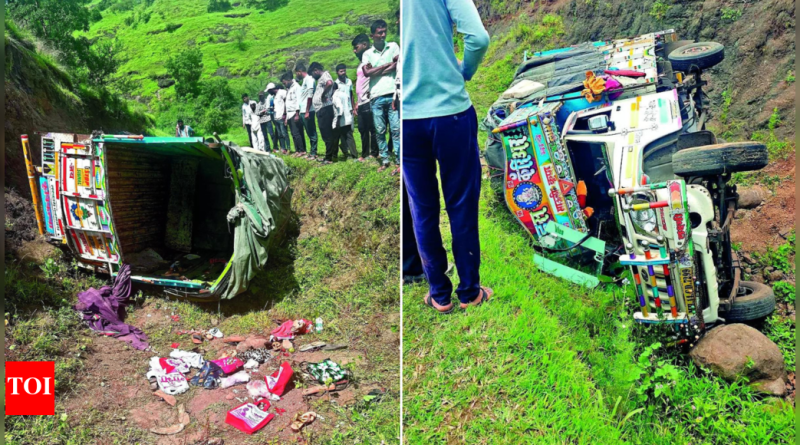 पुणे: दहा महिलांच्या भक्तांना ठार मारण्यात आले आणि दोन पुरुष आणि दोन मुले यांच्यासह जखमी झाले.पाटजवळ पप्पलवाडी येथील पिक-अप ट्रकच्या मागील मालवाहू पलंगावर 35 हून अधिक भक्तांनी चढले होते. घाट विभागात थोडे पुढे वाहन एका उंच ग्रेडियंटवर मागे सरकले आणि 30 फूट खाईत पडले.कुंडेश्वर मंदिर हे एक प्रमुख धार्मिक ठिकाण आहे जे श्रावण दरम्यान भक्त मोठ्या संख्येने भेट देतात.इतर वरिष्ठ पोलिस अधिका with ्यांसमवेत अपघाताचे ठिकाण आणि रुग्णालयांना भेट दिल्यानंतर पिंप्री चिंचवडचे पोलिस आयुक्त विनय कुमार चौबे यांनी टीओआयशी बोलले. ते म्हणाले, “जखमी पीडितांवर जवळच खासगी रुग्णालयात उपचार केले जात आहेत.”पोलिसांनी मृताची ओळख मंडबई दरेकर () ०), सनाबाई दरेकर () ०), मीराबाई चोरघे () ०), शोभा पपल () 33), सुमान पोपल () ०), शकुबई चोरगी () ०), शारदा चोरघे () 45), baial) पपला ())) पापवाडी.दरम्यान, पंतप्रधान नरेंद्र मोदी यांनी एक्सवरील पीएमओ हँडलद्वारे शोक व्यक्त केला. त्यांनी मृत व्यक्तीच्या कुटूंबियांना 2 लाख रुपये आणि पंतप्रधानांच्या राष्ट्रीय मदत निधीतून जखमींना 50,000 रुपयांची घोषणा केली.राजगुरुनगर येथील शिवतर्थ हॉस्पिटलचे डॉ. प्रफुलला बोरुद यांनी टीओआयला सांगितले की, “एका लहान मुलासह पाच लोक आमच्या रुग्णालयात उपचार सुरू आहेत. डोक्यासह अनेक जखमांसह तीन जणांची स्थिती गंभीर आहे. उर्वरित भागात सतत फ्रॅक्चर आहे.”राजगुरुनगरमधील गावडे रुग्णालयाचे डॉ. हर्षद गावडे यांनी टीओआयला सांगितले की, दुपारी तीन जखमी महिलांना आणले गेले. ते म्हणाले, “एक आधीच मरण पावला होता. एकाधिक फ्रॅक्चरसह आणखी दोन इतर उपचार आणि स्थिर आहेत,” तो म्हणाला.पिक-अप ट्रकच्या मालकाने सोमवारपासून त्याच्या कुटुंबातील सदस्यांसह कुंडेश्वर मंदिरात भेट देण्याची योजना आखली होती. “त्याचे नातेवाईक आणि पोपवाडीतील इतर रहिवासी सामील झाले. ते पिक-अप ट्रकच्या मालवाहू पलंगावर बसले होते. हे मंदिर एका टेकडीवर आहे आणि अग्रगण्य रस्ता एका उंच झुक्याने अरुंद आहे, “त्याने टीओआयला सांगितले.प्राइमा फॅकीच्या तपासणीनुसार, ओव्हरलोड केलेल्या पिक-अप ट्रकचा चालक थांबला असता खाली येणा vehicle ्या वाहनास मार्ग दाखवताना थांबला असेल. “त्यानंतर तो गती मिळविण्यात अपयशी ठरला आणि वाहन आपोआप उलटून गेले आणि 30 फूट खाईत पडले,” अधिका said ्याने सांगितले.सहाय्यक पोलिस आयुक्त राजेंद्रसिंग गौर यांनी तोईला सांगितले की हे मंदिर पुणे ग्रामीण पोलिसांच्या कार्यक्षेत्रात आहे, तर रस्ता पिंप्री चिंचवड पोलिसांच्या खाली आहे. माहिती मिळाल्यानंतर दोन्ही युनिटमधील संघ घटनास्थळी पोहोचली. ते म्हणाले, “हा श्रावनी सोमवार असल्याने या भागात बरेच भक्त होते. सर्वजण मदतीसाठी धावले,” ते म्हणाले की, पीडिता