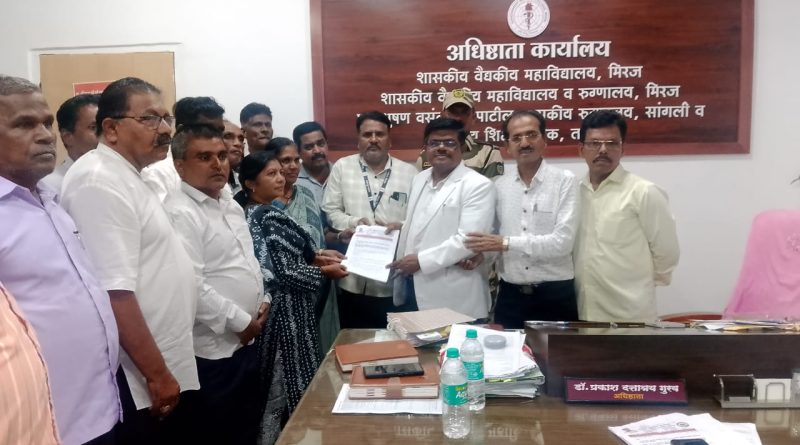 डॉ. प्रकाश गुरव, अधिष्ठाता, सांगली व मिरज सिव्हिल शासकीय वैद्यकीय महाविद्यालय, मिरज यांना लेखी निवेदन