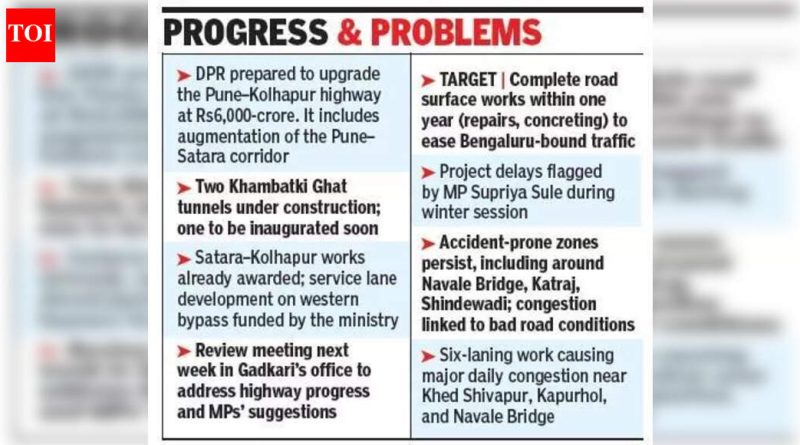 पुणे: केंद्रीय रस्ते वाहतूक आणि महामार्ग मंत्री नितीन गडकरी यांनी गुरुवारी सांगितले की, मंत्रालयाने सध्याचा पुणे-कोल्हापूर महामार्ग सुधारण्यासाठी 6,000 कोटी रुपये खर्चून सविस्तर प्रकल्प अहवाल (डीपीआर) तयार केला आहे. पुणे-सातारा कॉरिडॉरच्या विस्तारीकरणाचाही या योजनेत समावेश आहे.हिवाळी अधिवेशनात बारामतीच्या खासदार सुप्रिया सुळे यांनी विचारलेल्या प्रश्नाला ते उत्तर देत होते.“सरकार डीपीआरची अंमलबजावणी सुरू करणार आहे. साताऱ्याजवळील खंबाटकी घाटाजवळ दोन बोगद्यांचे काम सुरू आहे. त्यातील एका बोगद्याचे लवकरच उद्घाटन होणार आहे,” ते म्हणाले. “महामार्ग अत्यंत महत्त्वाचा आहे आणि मंत्रालय या प्रकल्पाचा पुन्हा अभ्यास करत आहे. आम्ही पश्चिम बायपासच्या सर्व्हिस लेन विकसित करण्यासाठी मंत्रालयाचा निधी वापरत आहोत. सातारा ते कोल्हापूर दरम्यानच्या कामांना यापूर्वीच पुरस्कार देण्यात आला आहे, असे गडकरी म्हणाले.खासदारांनी दिलेल्या सूचनांसह महामार्ग प्रकल्प आणि संबंधित मुद्द्यांवर अधिक चर्चा करण्यासाठी पुढील आठवड्यात त्यांच्या कार्यालयात आढावा बैठकीचे नियोजन करण्यात आल्याचे त्यांनी सांगितले. बंगळुरूच्या दिशेने जाणाऱ्या प्रवाशांचा त्रास कमी करण्यासाठी रस्त्याच्या पृष्ठभागाची कामे, दुरुस्ती आणि काँक्रिटीकरण इत्यादी कामे एका वर्षात पूर्ण करण्याचे मंत्रालयाचे उद्दिष्ट आहे.दरम्यान, या प्रकल्पाला विलंब होत असल्याचे सुळे यांनी सांगितले. “काही रस्त्यांच्या कंत्राटदारांना काळ्या यादीत टाकले आहे. काम कधी पूर्ण होणार?” ती म्हणाली.पुणे शहरातील नवले पुलासारख्या ठिकाणी अपघातांचे प्रमाण कमी झाले असले तरी अपघातप्रवण भागांची समस्या कायम असून या समस्येतून सुटका करण्यासाठी प्रयत्नांची गरज असल्याचेही सुळे यांनी सांगितले. पुलाच्या आजूबाजूला काळे ठिपके आहेत. “पुणे-सातारा रोडवरील खराब रस्त्यांच्या कामांचा शहरात मोठा परिणाम झाला आहे. शहरातील कात्रज, शिंदेवाडी आणि जवळपासच्या भागांसारख्या बाहेर पडण्याच्या मार्गांवर वाहतूक कोंडी होत आहे,” असे कात्रजचे रहिवासी चिन्मय जोशी यांनी सांगितले. विशेषत: रात्रीच्या वेळी या ठिकाणांहून पुण्यात येणारी अवजड वाहतूक धोक्याची ठरते, असे ते म्हणाले. विशेषत: सर्व भाग अपघात प्रवण बनल्यामुळे या भागांमध्ये स्थानिकांना ये-जा करणे कठीण झाले आहे. “पुणे आणि आजूबाजूच्या परिसरातील अनेक नागरिक पुणे-कोल्हापूर महामार्गापासून दूर असलेल्या वाई आणि महाबळेश्वर सारख्या लोकप्रिय पर्यटन स्थळांना भेट देतात. धार्मिक सहलीसाठी कोल्हापूरला जाणाऱ्या पर्यटकांची संख्याही जास्त आहे. रस्त्यांची कामे अपूर्ण असल्याने सर्वच प्रवाशांचे हाल हो