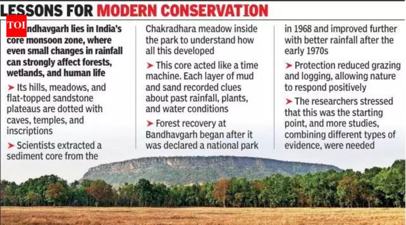 पुणे : मध्य प्रदेशातील बांधवगडच्या जंगलात खोलवर मातीत लिहिलेली एक लांबलचक आणि आश्चर्यकारक कथा वैज्ञानिकांना सापडली आहे. गाळाचा अरुंद गाभा, फक्त 60 सेमी लांब, संशोधकांना सुमारे 2,600 वर्षांपासून या प्रदेशातील लोकांवर हवामानाचा कसा प्रभाव पडला हे शोधण्यात प्रवृत्त केले. हवामानातील बदल आपोआपच समाजाच्या पतनास कारणीभूत ठरतात या सामान्य समजाला त्यांचे निष्कर्ष आव्हान देतात. होलोसीन जर्नलमध्ये नुकतेच प्रकाशित झालेले हे संशोधन लोक आणि निसर्गाने दीर्घकाळ एकत्र कसे काम केले हे समजून घेण्यासाठी केले गेले.बीरबल साहनी इन्स्टिट्यूट ऑफ पॅलेओसायन्सेस, अशोका विद्यापीठ, आघारकर संशोधन संस्था, भारतीय उष्णकटिबंधीय हवामानशास्त्र संस्था आणि वैज्ञानिक आणि नाविन्यपूर्ण संशोधन अकादमीच्या शास्त्रज्ञ आणि इतिहासकारांनी हे संशोधन केले आहे.पेपरमध्ये म्हटले आहे, “आज, बांधवगड हे व्याघ्र प्रकल्प म्हणून प्रसिद्ध आहे. पण ते संरक्षित जंगल बनण्याच्या खूप आधी, ते लोक राहत होते, शेती करत होते, गुहा आणि मंदिरे बांधत होते आणि शतकानुशतके बदलत असलेल्या पावसामुळे पाण्याचे व्यवस्थापन करत होते. अभ्यासातून असे दिसून आले आहे की हवामानातील बदलांनी पर्यावरणाला आकार दिला असताना त्यांनी मानवी नशिबाचा निर्णय घेतला नाही.”अशोका विद्यापीठाच्या आंतरविद्याशाखीय पुरातत्व संशोधन केंद्राचे नयनजोत लाहिरी, अभ्यासाच्या सह-लेखकांपैकी एक, म्हणाले, “हवामानातील बदल असूनही, प्राचीन काळापासून मध्ययुगीन काळातील मानवी व्यवसायाचा विस्तार येथे एक स्थिर आहे. बदलत्या पर्यावरणीय परिस्थितींसह, मानवी जीवनाची छाप मोठ्या प्रमाणात वाढली आहे.”संघाने पाच वैज्ञानिक पद्धती वापरल्या: खनिज चुंबकत्व, धान्य-आकाराचे विश्लेषण, डायटॉम्स (लहान पाण्याची वनस्पती), परागकण विश्लेषण आणि मूलभूत रसायनशास्त्र.डेटाचा वापर करून, संशोधकांनी 525 बीसीई पासून आजपर्यंत पाच प्रमुख हवामान टप्पे ओळखले. महत्त्वाचे म्हणजे, त्यांनी प्रथम हवामानातील बदल स्वतंत्रपणे मॅप केले आणि नंतरच त्यांची तुलना पुरातत्व इतिहासाशी केली.सुरुवातीच्या टप्प्यात, सुमारे 2,700 आणि 2,400 वर्षांपूर्वी, ओल्या आणि कोरड्या परिस्थितींमध्ये वारंवार बदल घडत होते. दगडी उपकरणे शिकारी-संकलक उपस्थित असल्याचे दर्शविते, तर अन्नधान्य परागकण सूचित करतात की शेती आधीच सुरू झाली आहे. ओल्या काळात, ओलसर पर्णपाती जंगले संपूर्ण प्रदेशात विस्तारली.दुसरा टप्पा, सुमारे 2,400 ते 1,700 वर्षांपूर्वी, कोरडा झाला. पाण्याची पातळी घसरली आणि वनस्पतींनी तणावाची चिन्हे दर्शविली. तरीही जेव्हा मोठ्या प्रमाणात खडक कापलेल्या गुहा दिसू लागल्या तेव्हा हे देखील घडले. मानवी क्रियाकलाप कमी झाला नाही,