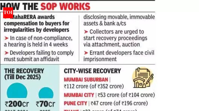 पुणे: महाराष्ट्र रिअल इस्टेट नियामक प्राधिकरणाने (महारेरा) प्रक्रिया जलद करण्यासाठी दोन महिन्यांपूर्वी मानक कार्यप्रणाली (एसओपी) सुरू करूनही वसुली वॉरंट अद्यापही अंमलबजावणीच्या टप्प्यावरच रखडल्याने, थकबाकीदार विकासकांकडून नुकसानभरपाईची प्रतीक्षा करणारे गृहखरेदीदार अजूनही अडचणीत आहेत.अशाच एका आदेशाच्या अंमलबजावणीची वाट पाहणाऱ्यांमध्ये 80 वर्षीय अरुण सेठ आणि त्यांची पत्नी यांचा समावेश आहे, ज्यांनी 2014 मध्ये एका गृहनिर्माण प्रकल्पात 50 लाख रुपयांहून अधिक गुंतवणूक केली होती. त्यांच्या नावे वसुली वॉरंट वर्षापूर्वी जारी करण्यात आले होते, तरीही महसूल अधिकारी त्यांच्यावर ठाम आहेत. “ऑर्डर पास केले जातात, परंतु काहीही अंमलात आणले जात नाही. विकासकाकडे लिलावासाठी संपत्ती शिल्लक आहे की नाही हे अनिश्चित आहे,” सेठ यांनी TOI ला सांगितले.महारेरा रिकव्हरी वॉरंटची अंमलबजावणी जिल्हा महसूल अधिकाऱ्यांनी विकासकांच्या मालमत्तेचा लिलाव करून किंवा त्यांच्या बँक खात्यातून वसुलीद्वारे केली जाईल. तथापि, गृहखरेदीदारांनी सांगितले की, मोठ्या प्रमाणात अनुशेष आणि प्रतिस्पर्धी प्रशासकीय प्राधान्यांमुळे दीर्घ विलंब झाला, ज्यामुळे अनेकांना, विशेषत: ज्येष्ठ नागरिकांना कोणताही दिलासा मिळाला नाही.रिअल इस्टेट रेग्युलेटर घर खरेदीदारांचे प्रभावीपणे संरक्षण करत आहेत आणि त्यांच्या आदेशांची अंमलबजावणी सुनिश्चित करत आहेत का, असा प्रश्न उपस्थित करणाऱ्या सर्वोच्च न्यायालयाच्या अलीकडील निरीक्षणानंतर या समस्येकडे पुन्हा लक्ष वेधले गेले. महारेरा अधिकाऱ्यांनी सांगितले की, रिकव्हरी वॉरंटची अंमलबजावणी ही जिल्हा प्रशासनाची जबाबदारी आहे.गेल्या नोव्हेंबरमध्ये, महारेराने मुंबई उच्च न्यायालयाच्या निर्देशांनुसार तपशीलवार एसओपी जारी केला होता, ज्यामध्ये निर्णायक अधिकाऱ्यांनी दिलेली नुकसान भरपाई देण्यासाठी विकासकांना 60 दिवसांची मुदत दिली होती. SOP नुसार, बिल्डरने या कालावधीत पैसे भरण्यात अयशस्वी झाल्यास, गृहखरेदीदाराने गैर-अनुपालन अर्ज दाखल करणे आवश्यक आहे. त्यानंतर महारेराने या प्रकरणाची चार आठवड्यांच्या आत सुनावणी करणे आवश्यक आहे आणि, पालन न केल्याची पुष्टी झाल्यास, विकासकाला अंतिम “वाजवी” मुदत द्या, असे त्यात नमूद केले आहे.कार्यकर्त्यांनी एसओपीमागील हेतूचे स्वागत केले परंतु अंमलबजावणीच्या समस्यांवर प्रकाश टाकला. “आम्ही दीर्घकाळापासून RERA आदेशांची जलद अंमलबजावणी करण्याची मागणी केली आहे. टाइमलाइन मदत करतात, परंतु जोपर्यंत महसूल अधिकारी तातडीने कारवाई करत नाहीत, तोपर्यंत विलंब होत राहील,” असे महाराष्ट्र सोसायटी वेल्फेअर असोसिएशनचे अध्यक्ष रमेश प्रभू यांनी 